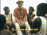 Um velho, antigo habitante do morro da comunhão relata para as crianças a historia do desfile.